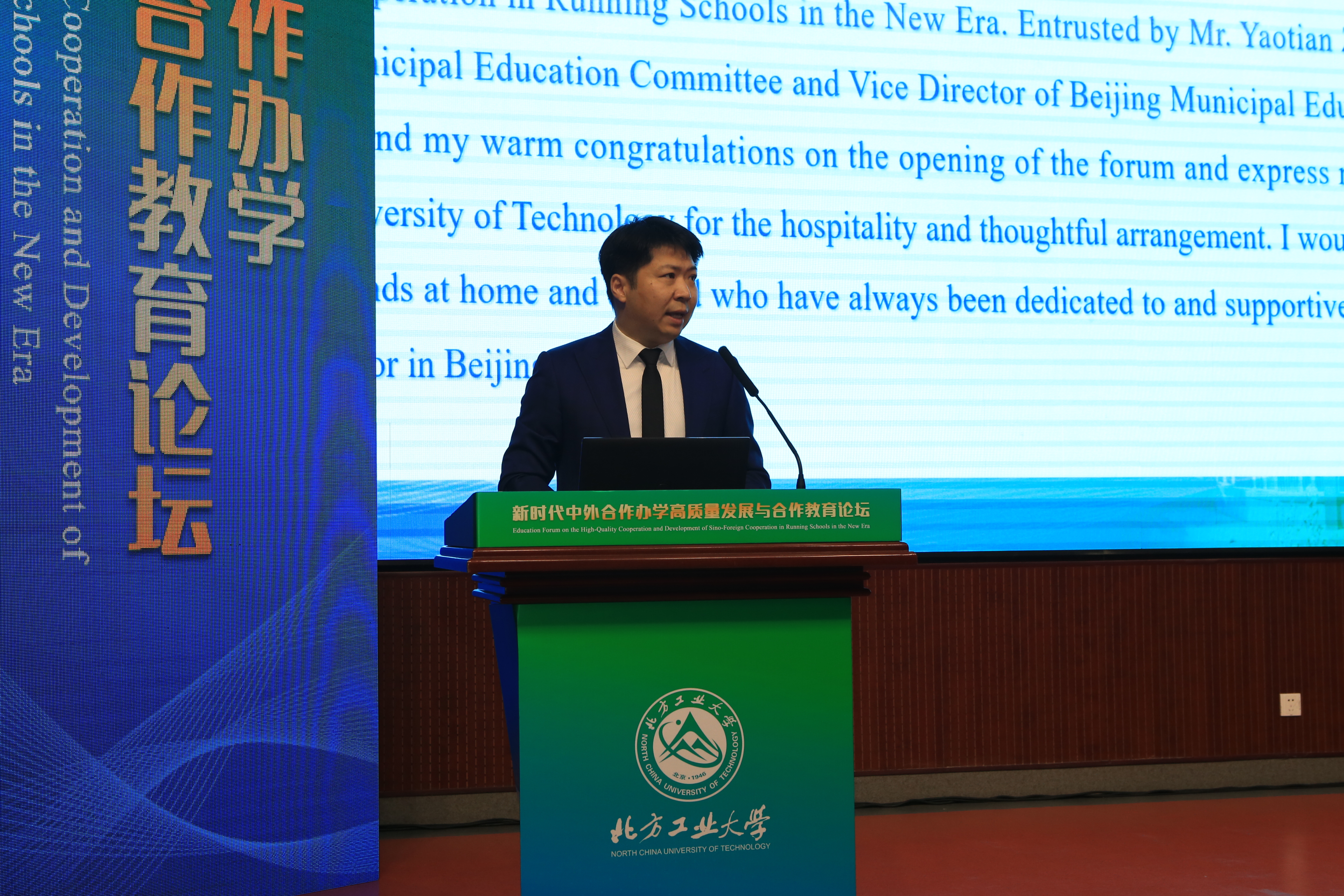 刘皓在论坛致辞中强调了北京在推动教育对外开放、引进优质教育资源方面的优势,并对北方工业大学在合作办学中的成就给予肯定。他表示,北京市教委积极支持中外合作办学,各高校要持续深化中外合作办学,培养高素质人才,为构建人类命运共同体贡献力量。