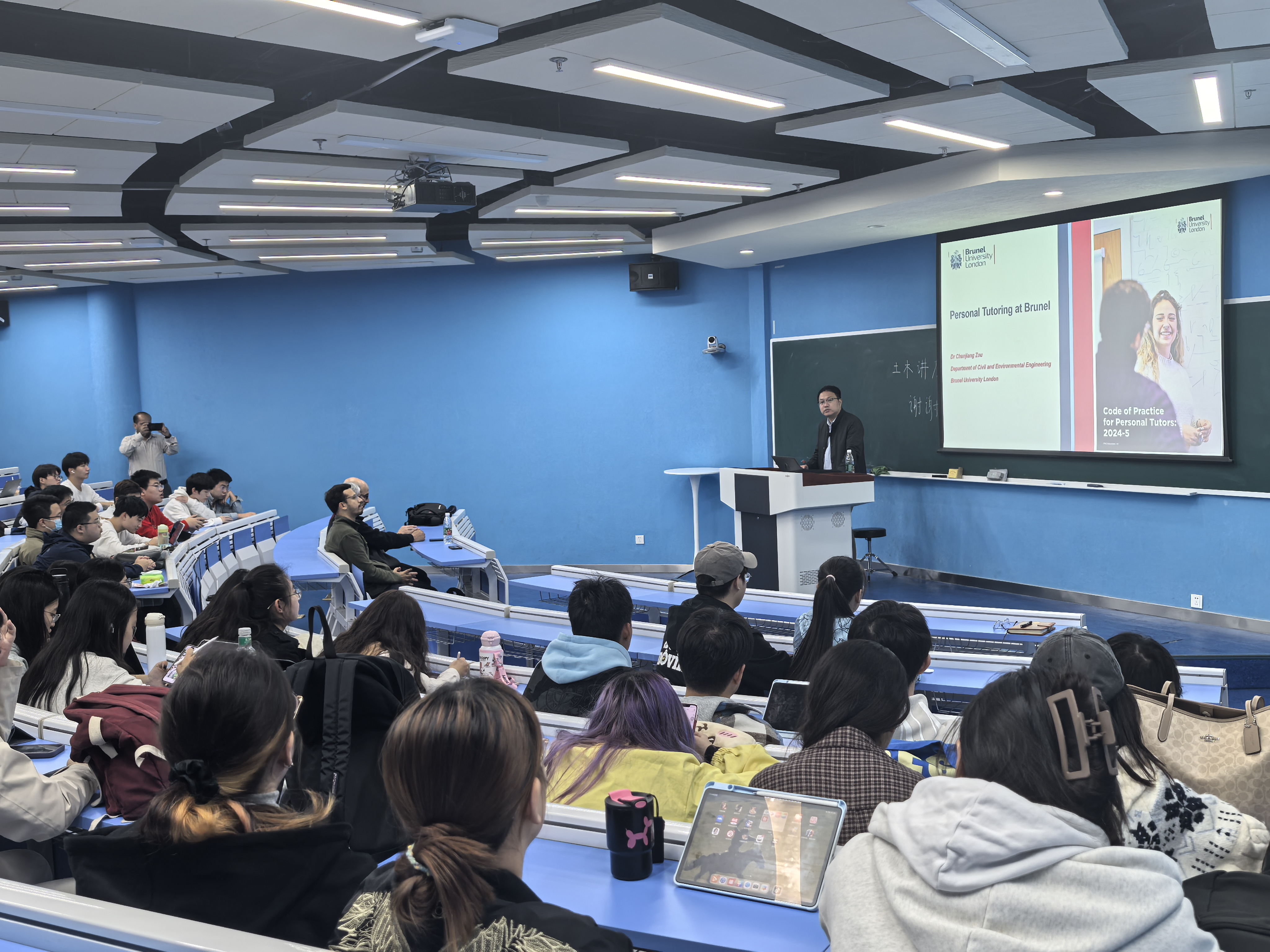 10月17日下午,伦敦布鲁内尔大学土木工程专业Chunjiang Zou博士为专业学生开展了Personal Tutoring(个性化辅导)方案安排及Extenuating Circumstances(特殊情况申请)讲座。土木工程专业的驻校教师及专业学生100余人参加了讲座。