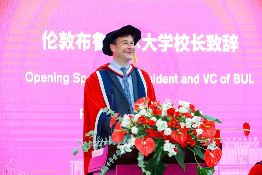 Andrew Jones校长宣布典礼开始。他对两校联合培养的首届毕业生表示热烈祝贺,高度赞扬了毕业生所取得的发展成就,鼓励他们成为全球新时代的开拓者和推动者。他强调了两校合作的深远意义,对大家的未来充满无限期待与美好祝福。